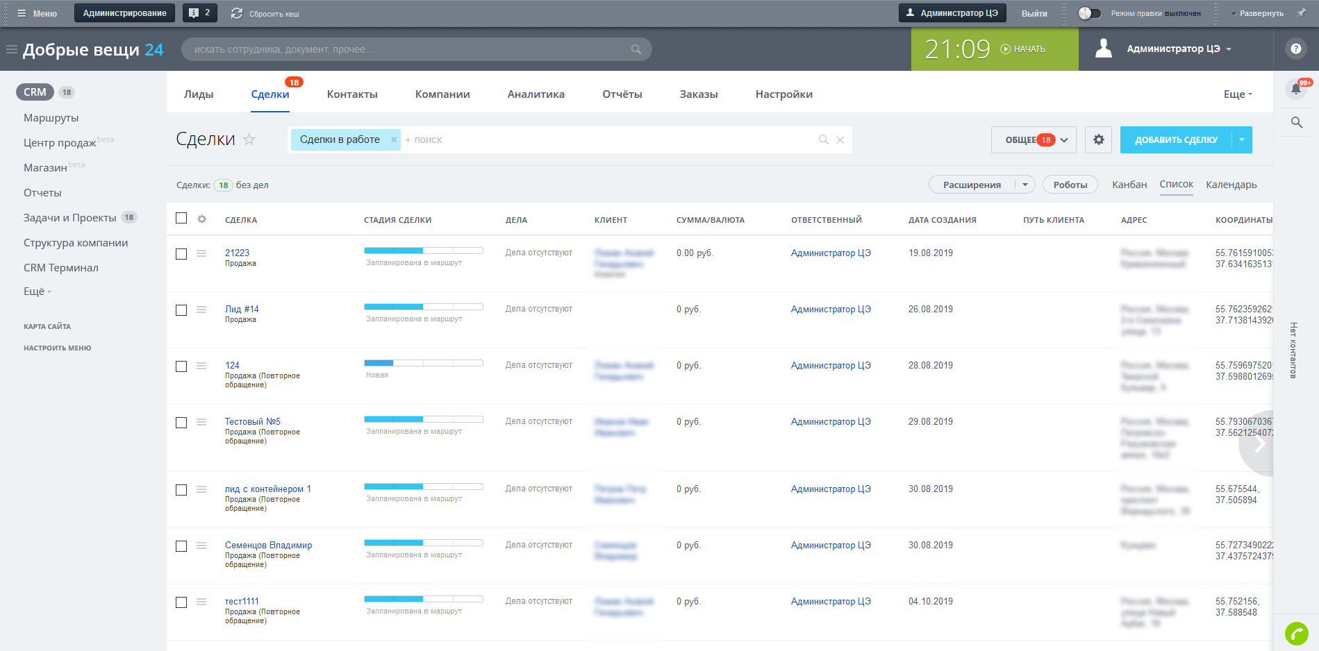 Задача проекта - полная автоматизация бизнес-процесса и оптимизация загрузки курьеров по забору вещей.